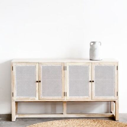 3 Door Solid Wood Sideboard Cabinet with Cane – Arlo Vista