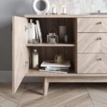 Every joint and angle is reinforced to provide a seamless look that highlights the natural durability of the timber. The substantial weight of the solid wood base and splayed legs ensures that the sideboard stays securely in place, even in high-traffic areas of the home. By prioritizing a “storage-first” approach, the design focuses on clean lines and a functional footprint, making this sideboard an essential element for organized and sophisticated modern living spaces. The internal framing is built to handle significant weight, allowing for a diverse range of decorative configurations while maintaining its perfectly level and sleek architectural profile.