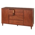 Every joint and angle is reinforced to provide a seamless look that highlights the natural durability of the timber. The substantial weight of the solid wood base ensures that the sideboard stays securely in place, even in high-traffic areas of the home. By prioritizing a “storage-first” approach, the design focuses on clean lines and a functional footprint, making this sideboard an essential element for organized and sophisticated modern living spaces. The internal framing is built to handle significant weight, allowing for a diverse range of decorative configurations while maintaining its perfectly level and sleek architectural profile.