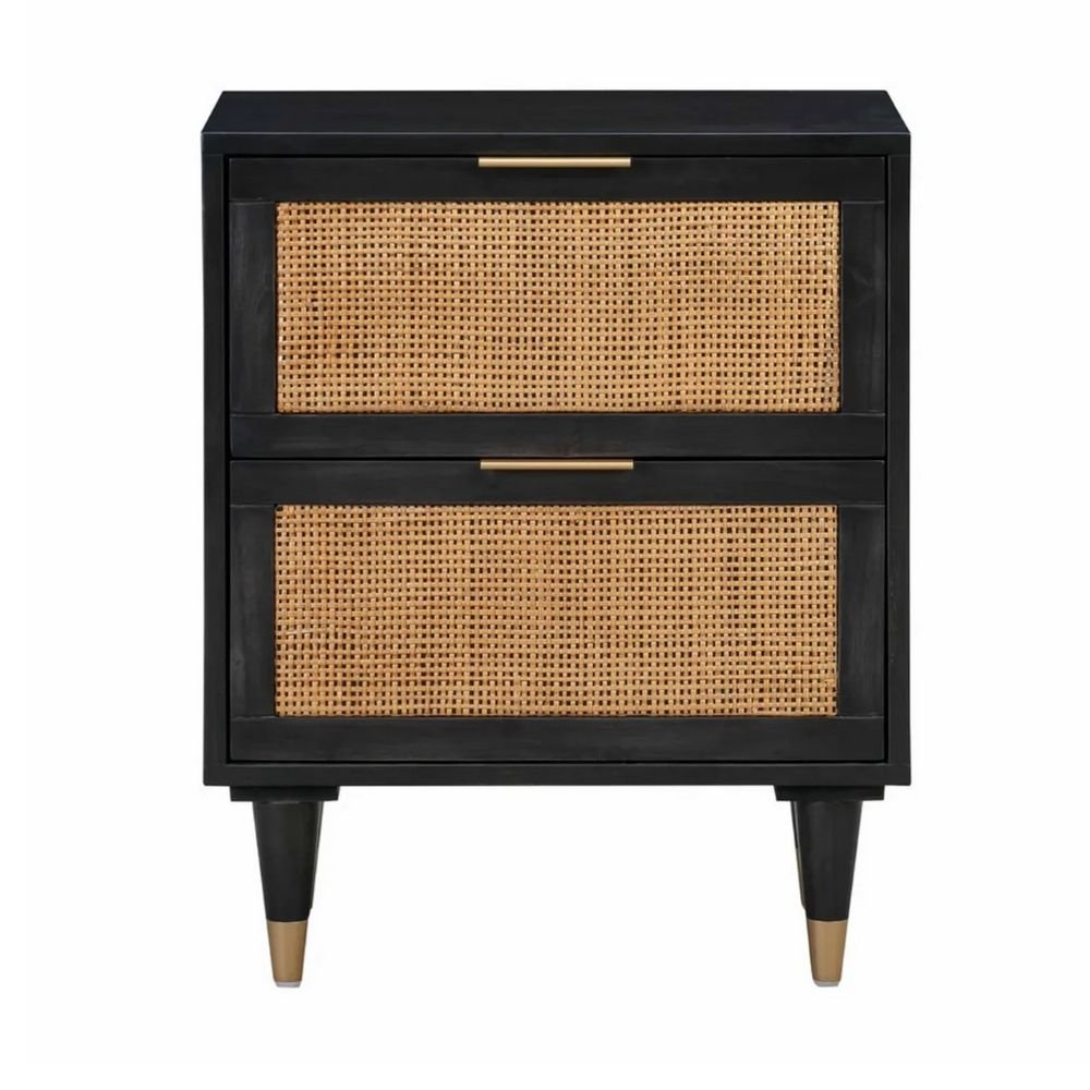 Hand-Woven Cane Fronts: Features natural rattan inserts on the drawers for a breathable and organic 3D texture.
