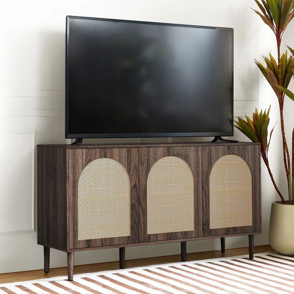 3 Door Solid Wood Sideboard Cabinet with Cane – Arlo Vista