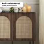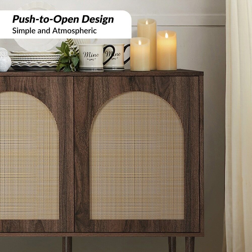Hand-Woven Cane: Features three arched cane door panels that add a layer of organic texture and visual interest.