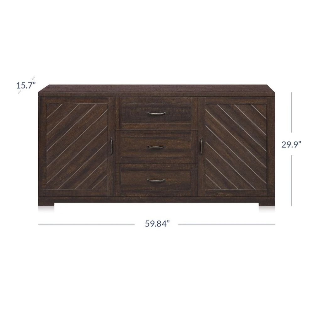 3 Drawer 4 Shelf Solid Wood Sideboard in Espresso – Rustic Ridge