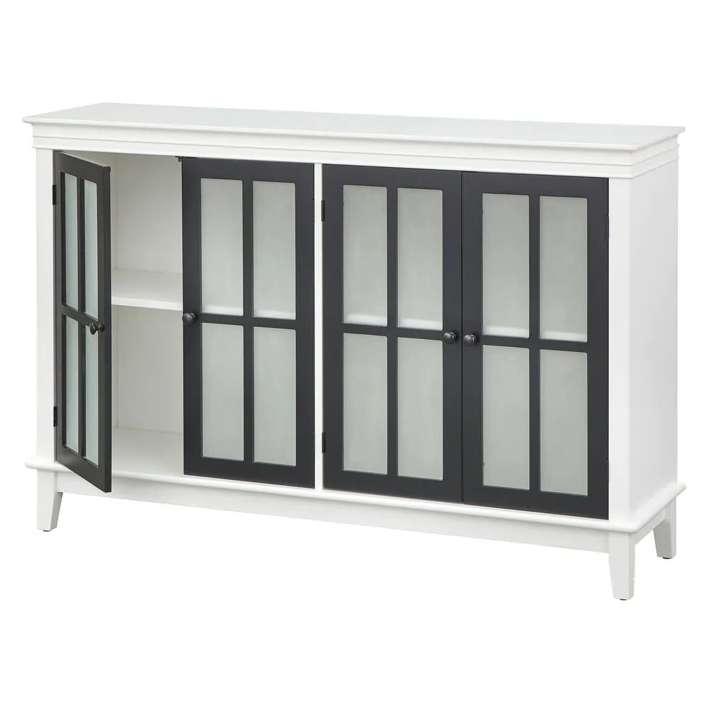• Frosted Glass Panes: Features four doors with tempered frosted glass to discreetly showcase items while maintaining a clean look.