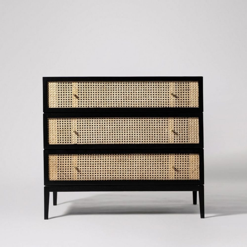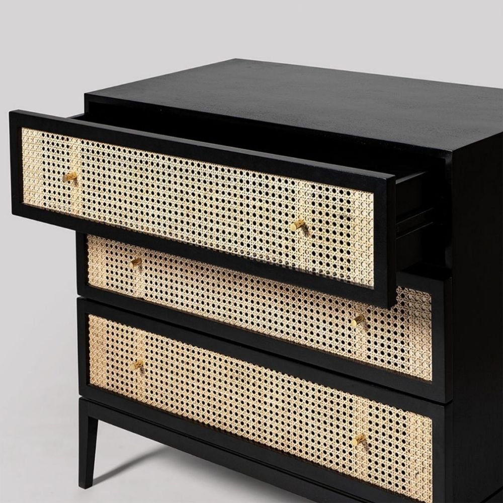 Solid Acacia Chest of Drawers with 3 Cane Fronts – Nero Glee