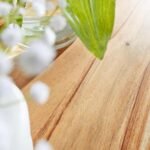 Use coasters or felt pads under decorative items and drinks to prevent moisture rings or scratches on the solid wood surface.