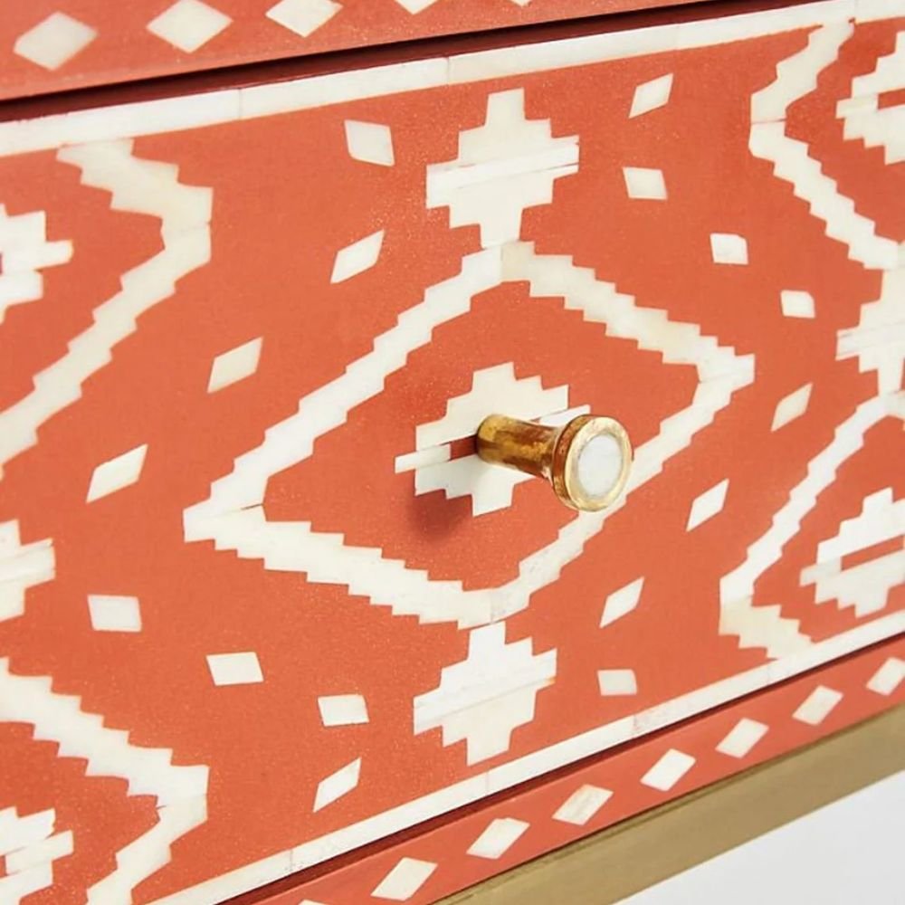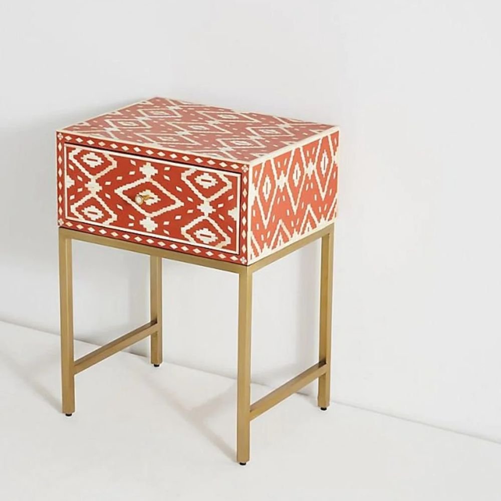 Ajmeri Bone Inlay Bedside Orange Table