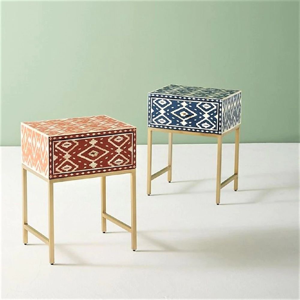 Home Collections Ajmeri Bone Inlay Bedside Orange Table