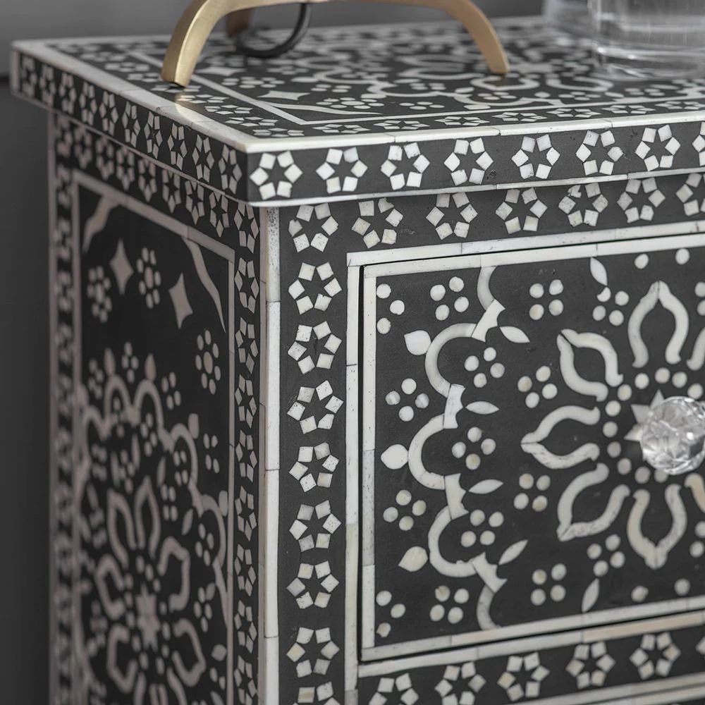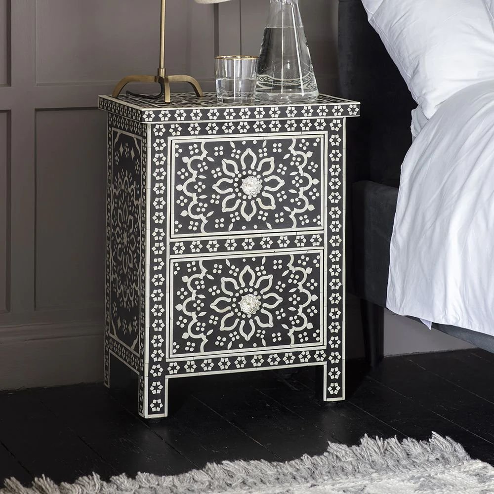 Home Collections Ajmeri Bone Inlay Bedside Table Black