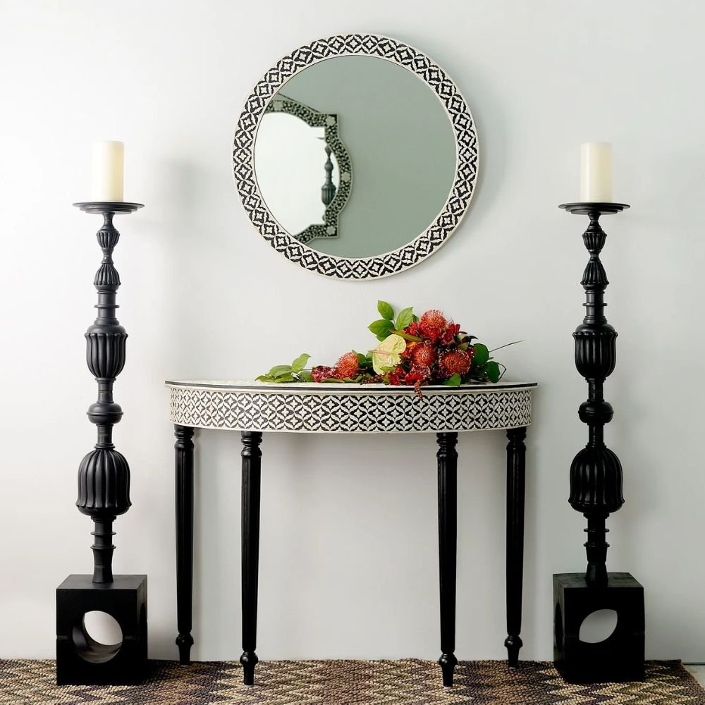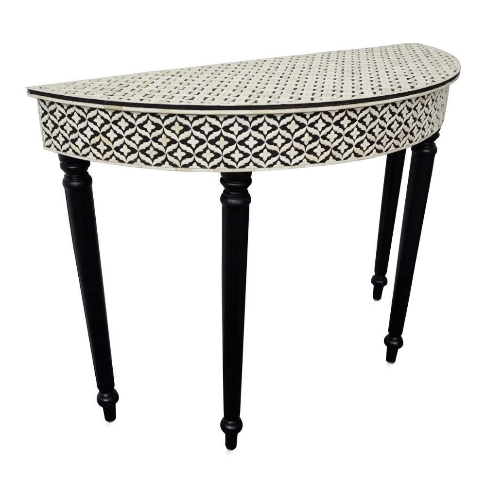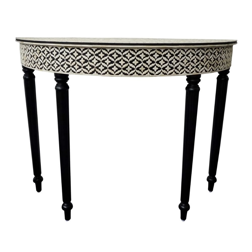 Home Collections Ajmeri Bone Inlay Curved Black Console Table