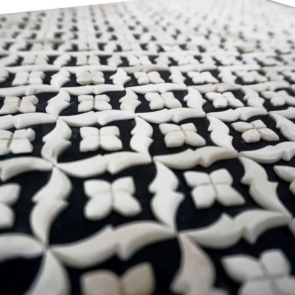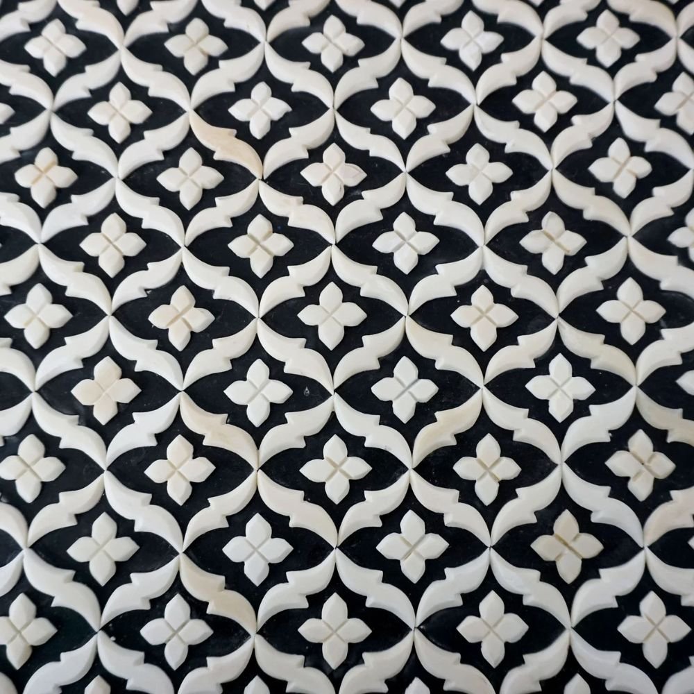 Jaipuri Bone Inlay Flower White Distress Finish