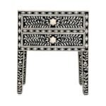Home Collections Ajmeri Bone Inlay Floral 2-Drawers Black Bedside Table