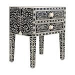 Ajmeri Bone Inlay Floral Bedside Black Table with Cabinet