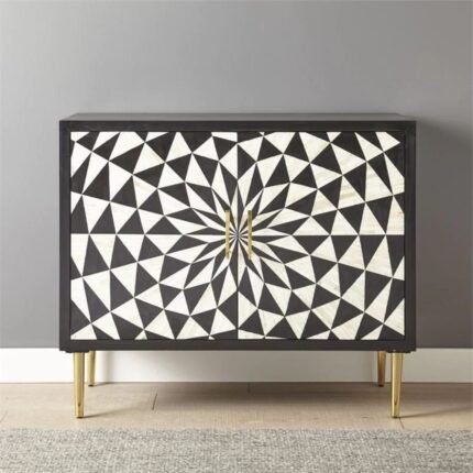 Ajmeri Bone Inlay Black And White Cabinet