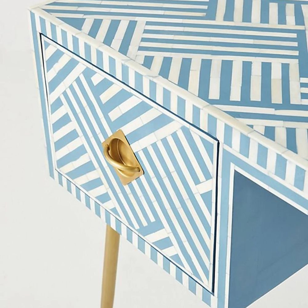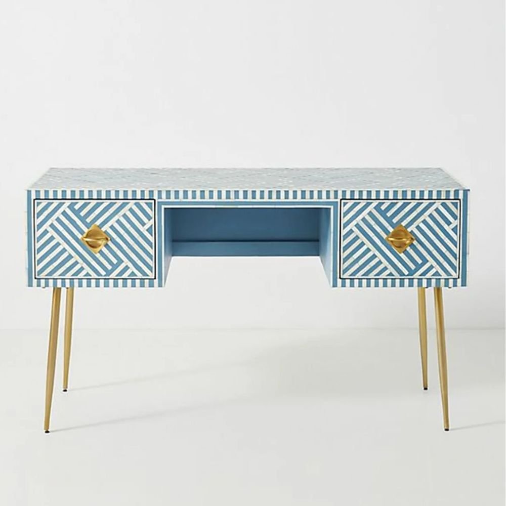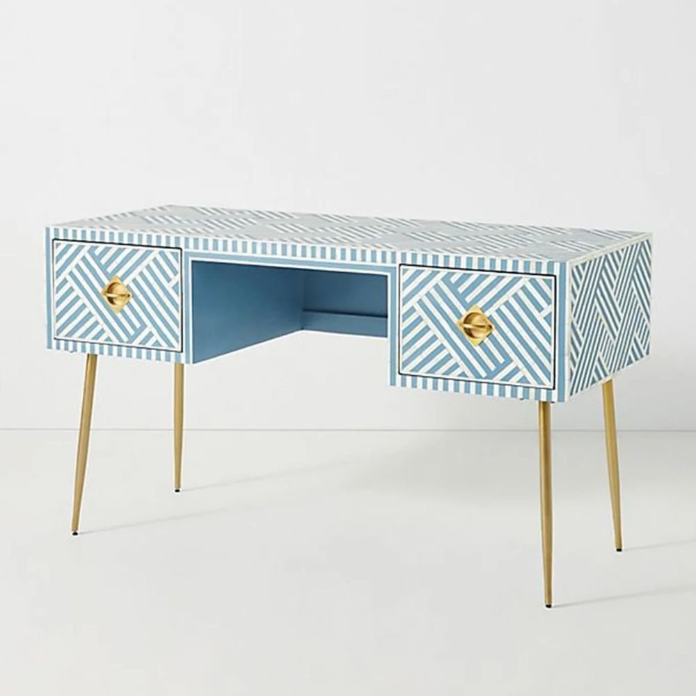 Home Collections Ajmeri Bone Inlay Sky Blue Console Desk 2 Drawers