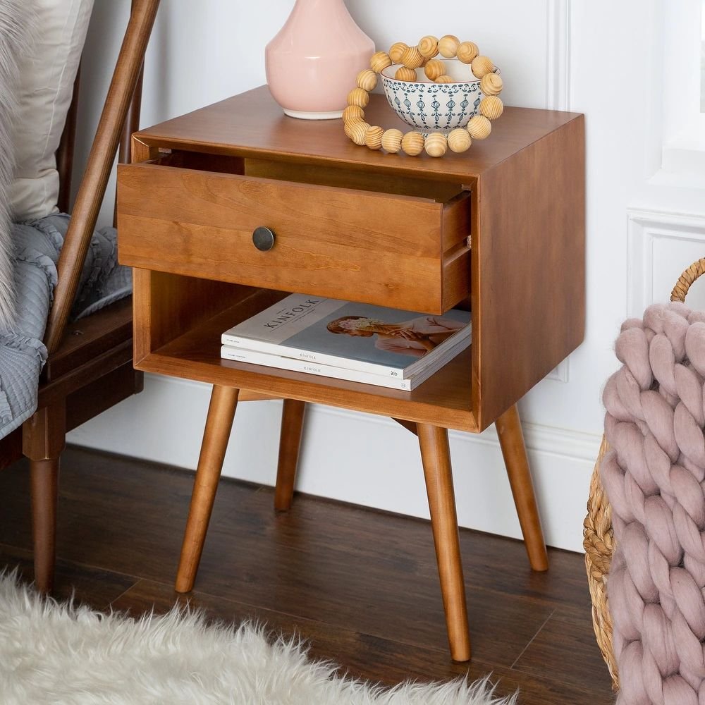 The height of 24.0 inches is ideal for creating a layered vignette with stylish table lamps and curated greenery. By introducing the warm wood tones of this bedside table, you add a layer of sophistication that feels both grounded and modern. Whether styled with minimalist ceramics or textured bedding, the impact of the mid-century silhouette reflects a high standard of living. The open shelving allows for dynamic decor displays, making the piece a versatile asset as your personal style evolves over time.