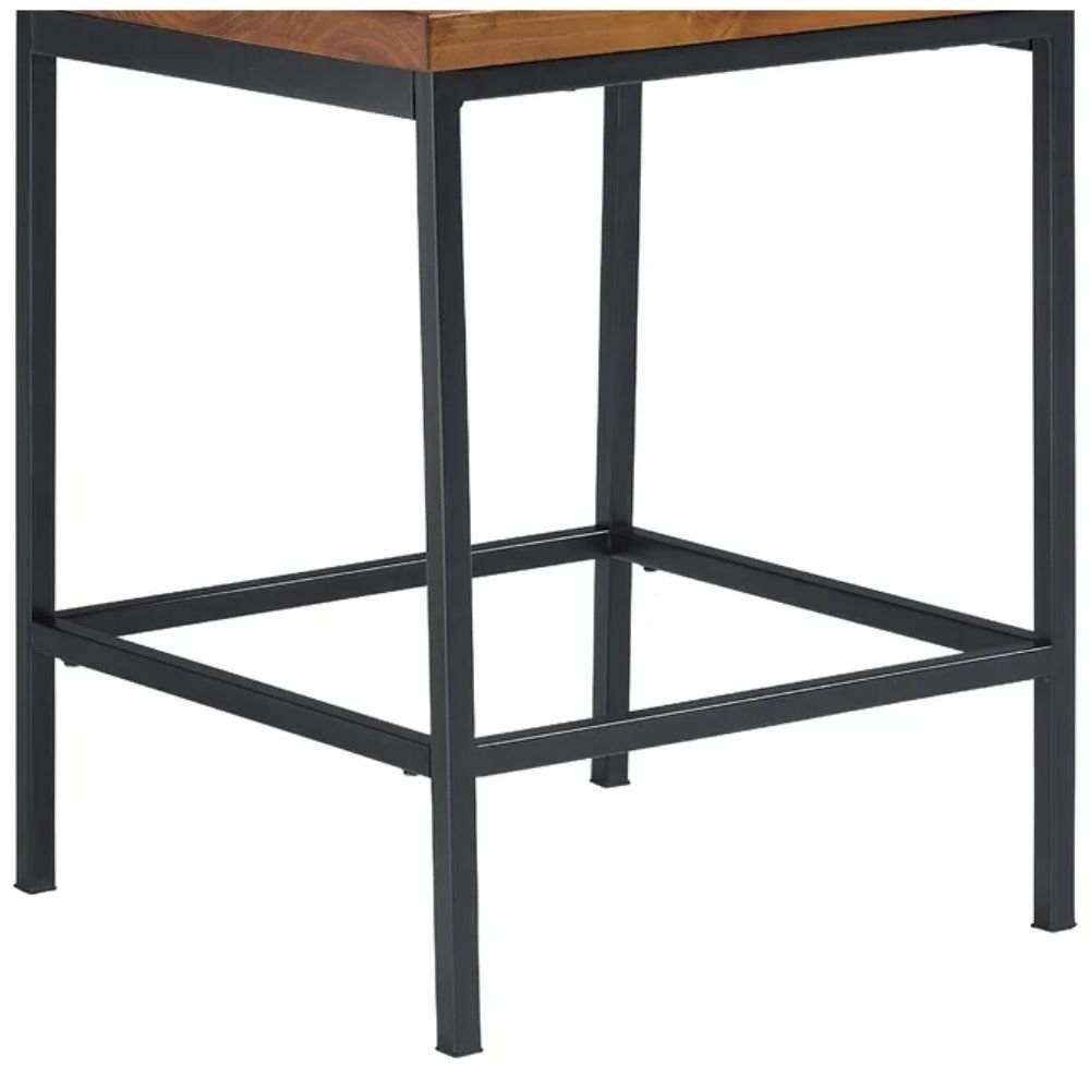 For a cohesive bar setting, pair it with complementary storage and serving pieces from Modera Furnish Bar cabinets to create a unified counter-height zone that feels intentional and well-balanced. Keep surfaces minimally styled to allow the solid wood seat and metal frame to remain the focal point. Warm ambient or pendant lighting enhances the Java Pine tone and highlights the material contrast. For broader inspiration on integrating industrial elements into refined interiors, features from Architectural Digest reflect similar principles of proportion, texture, and timeless design.