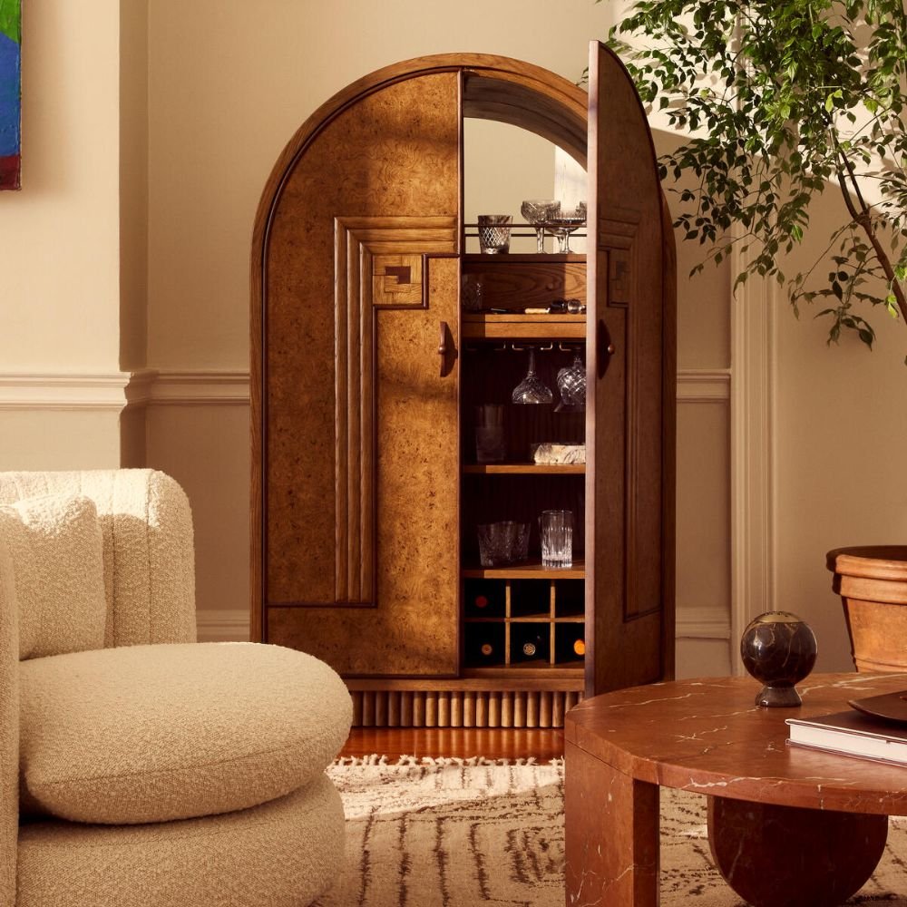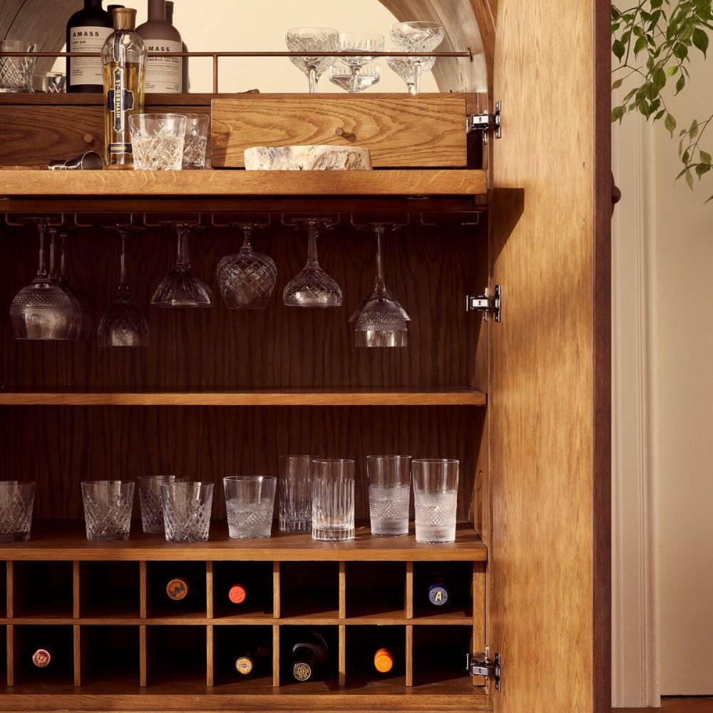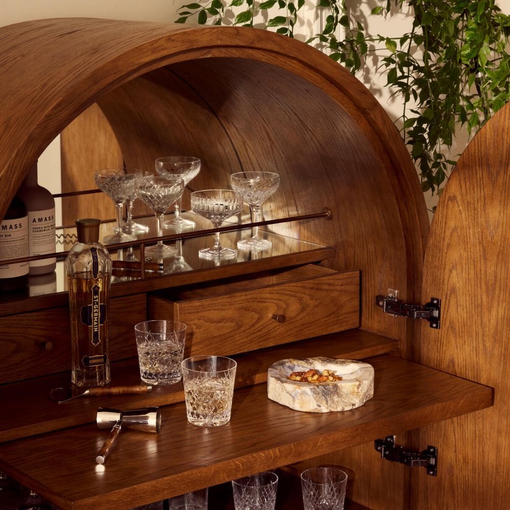 Benedict Bar Cabinet, Oak Burl