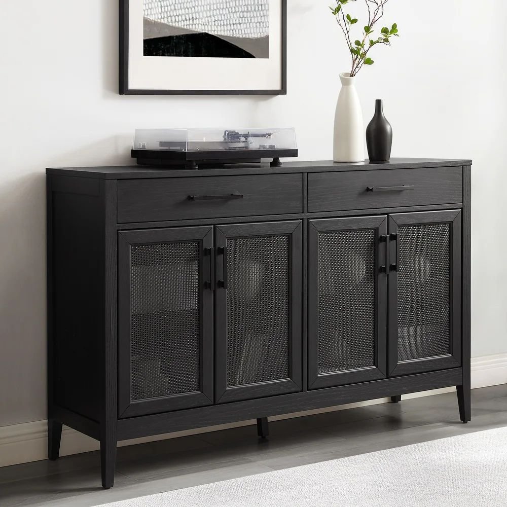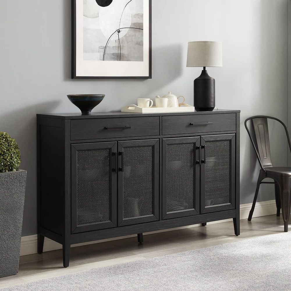 Black Solid Wood Sideboard Console with Rattan – Linear Noir