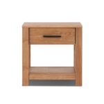 Below the drawer, the open shelf provides additional storage or display space for baskets, books, or decorative accents. This combination of closed and open storage keeps the bedside organised without feeling heavy or cluttered. The solid wood construction ensures stability and strength, making the bedside table suitable for long-term daily use. Its compact footprint allows it to work equally well in master bedrooms, guest rooms, or smaller spaces.