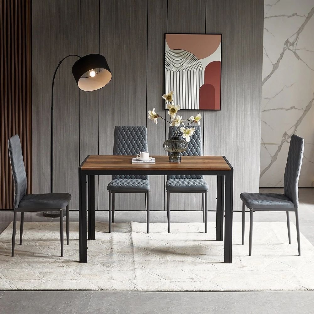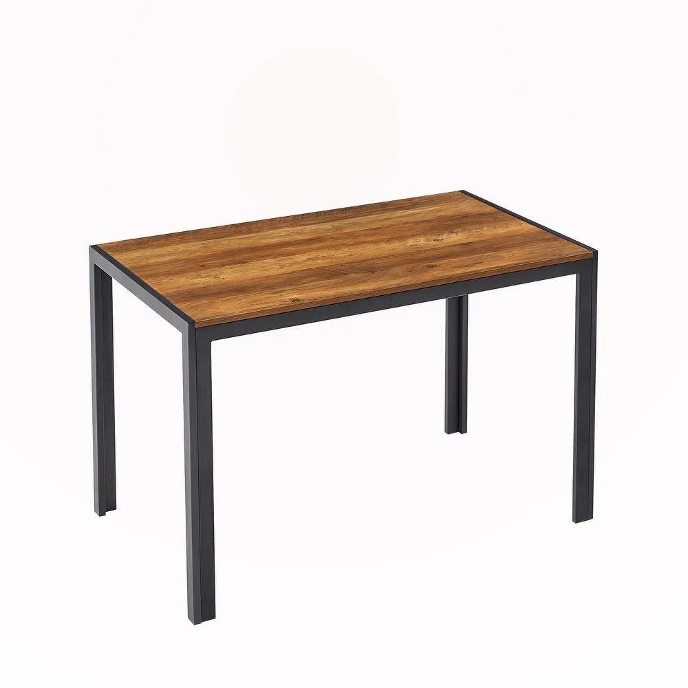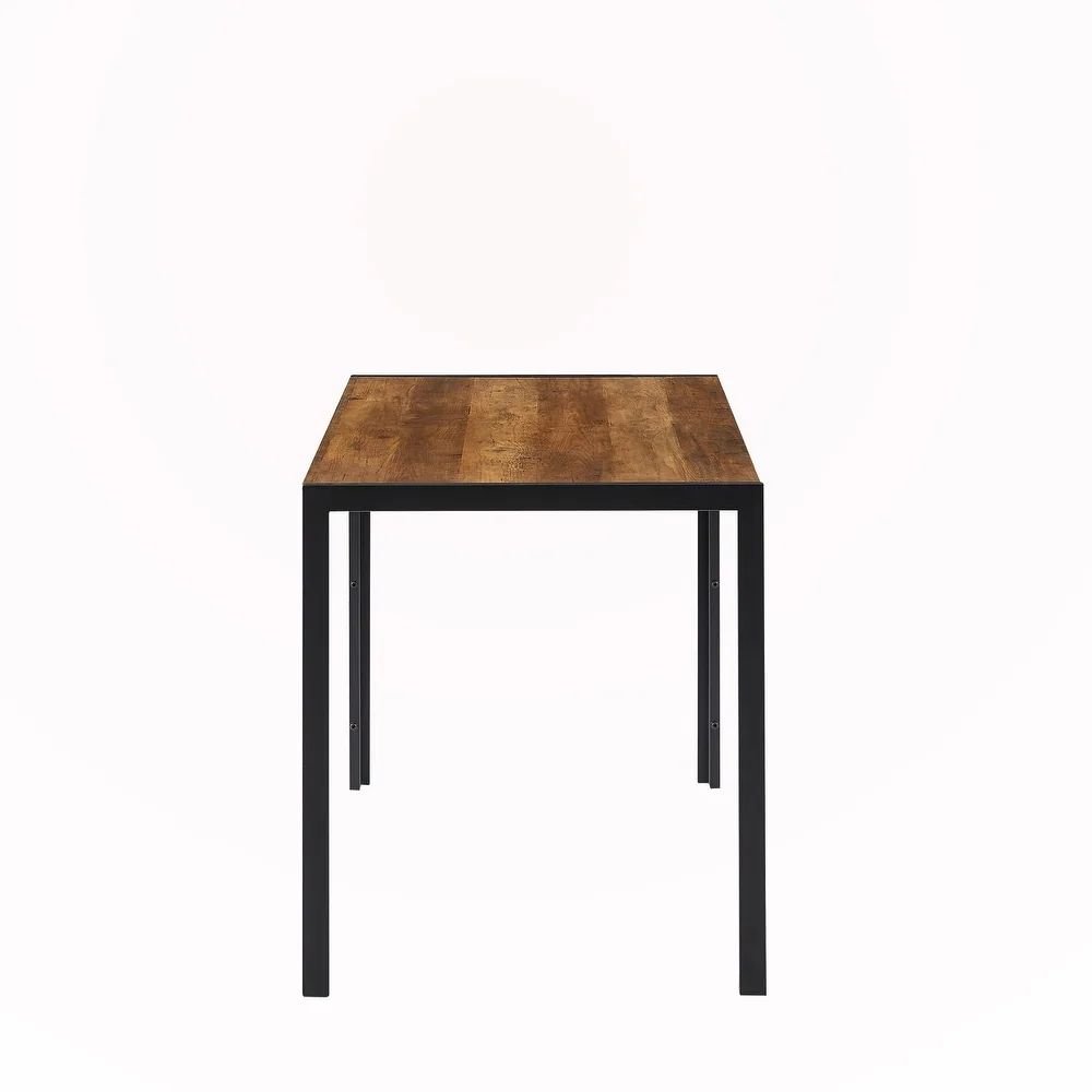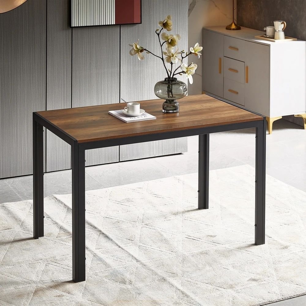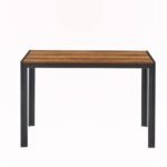 This bold dining table showcases a refined balance of natural wood warmth and modern industrial structure. Designed with a solid walnut-toned tabletop and a sleek black metal frame, it creates a strong visual statement while remaining practical for everyday dining. Its compact rectangular form comfortably accommodates up to four people, making it ideal for apartments, dining corners, and modern kitchens.