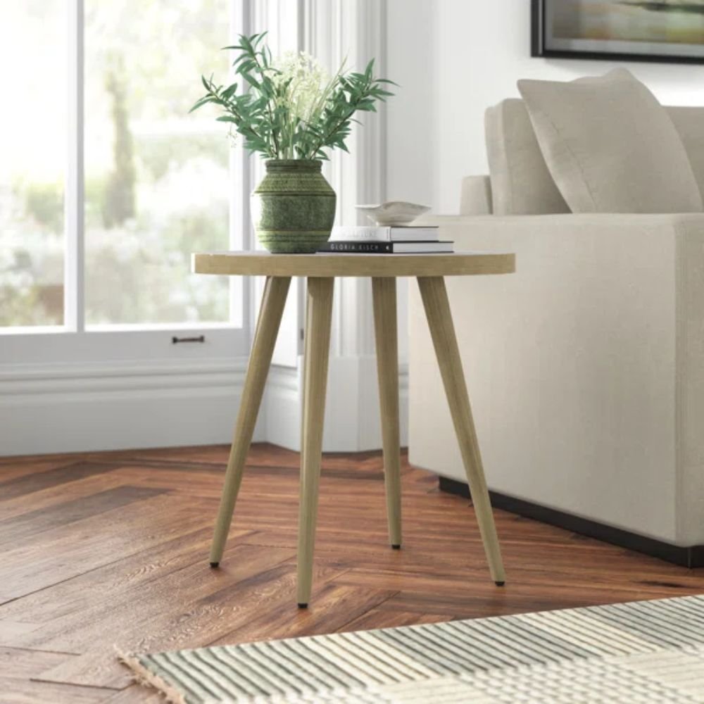 The modern home deserves a centerpiece that balances natural elegance with high-end architectural interest. This end table serves as a definitive statement of luxury, blending a bright, sophisticated surface with a warm, organically tapered solid wood base for discerning interiors.