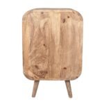 A natural wood side cabinet featuring a rounded barrel silhouette with vertical fluted detailing and splayed legs - Modera Furnish.