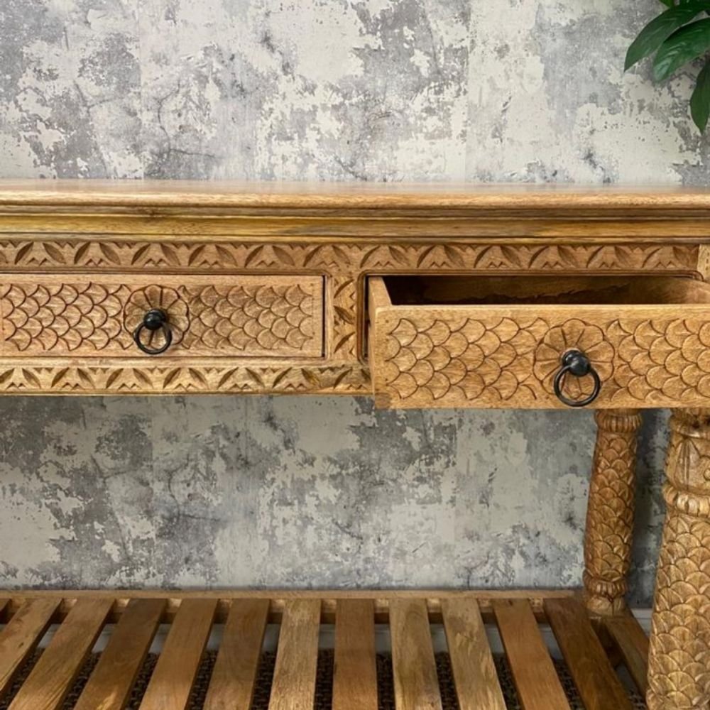 Carved Mango Solid Wood Console Table