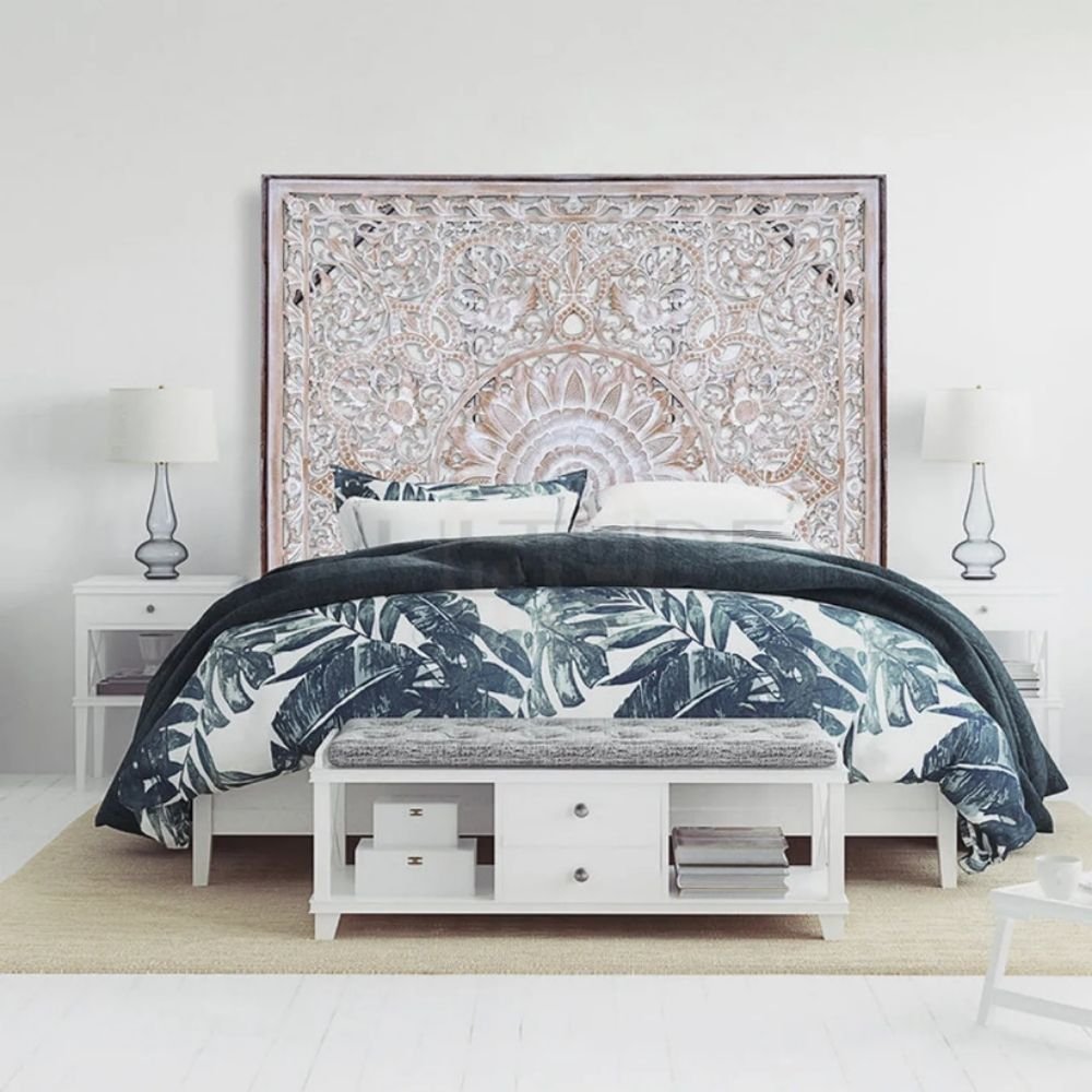 Carved Solid Wood Bed Headboard in King Size – Elara Muse