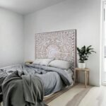 A well-placed furniture piece can transform the energy of a room. This bed headboard acts as a bridge between structural architecture and interior styling, providing a grounding element that anchors large master suites.
