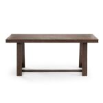 This dining table enhances interiors by introducing warmth and structure through its solid wood build and pecan wirebrushed finish. Its rectangular silhouette anchors dining spaces while maintaining a sense of openness and order.