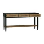 Crafted entirely from solid wood, this console table reflects a commitment to material integrity and long-term usability. The three-drawer configuration supports everyday organization while maintaining a calm, uninterrupted façade. A lower shelf extends functional storage without disrupting the visual balance, making the piece equally suitable for entryways, living rooms, or transitional spaces. The contrast between darker and lighter wood tones adds subtle depth while preserving a cohesive overall appearance.