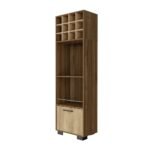 Its tall and slim form makes this corner bar cabinet perfect for compact areas without compromising on storage. The structured layout ensures every inch serves a purpose — from display to concealment.