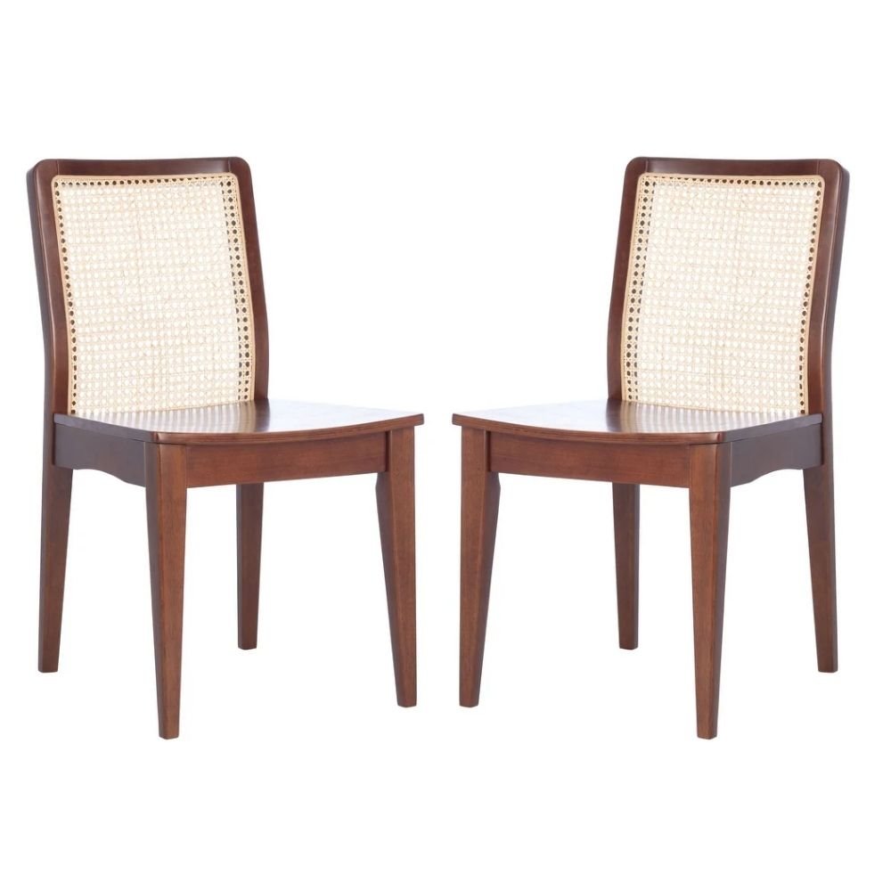 Modern Dining Chairs in Solid Wood Cane – Dark Brown Set of 2