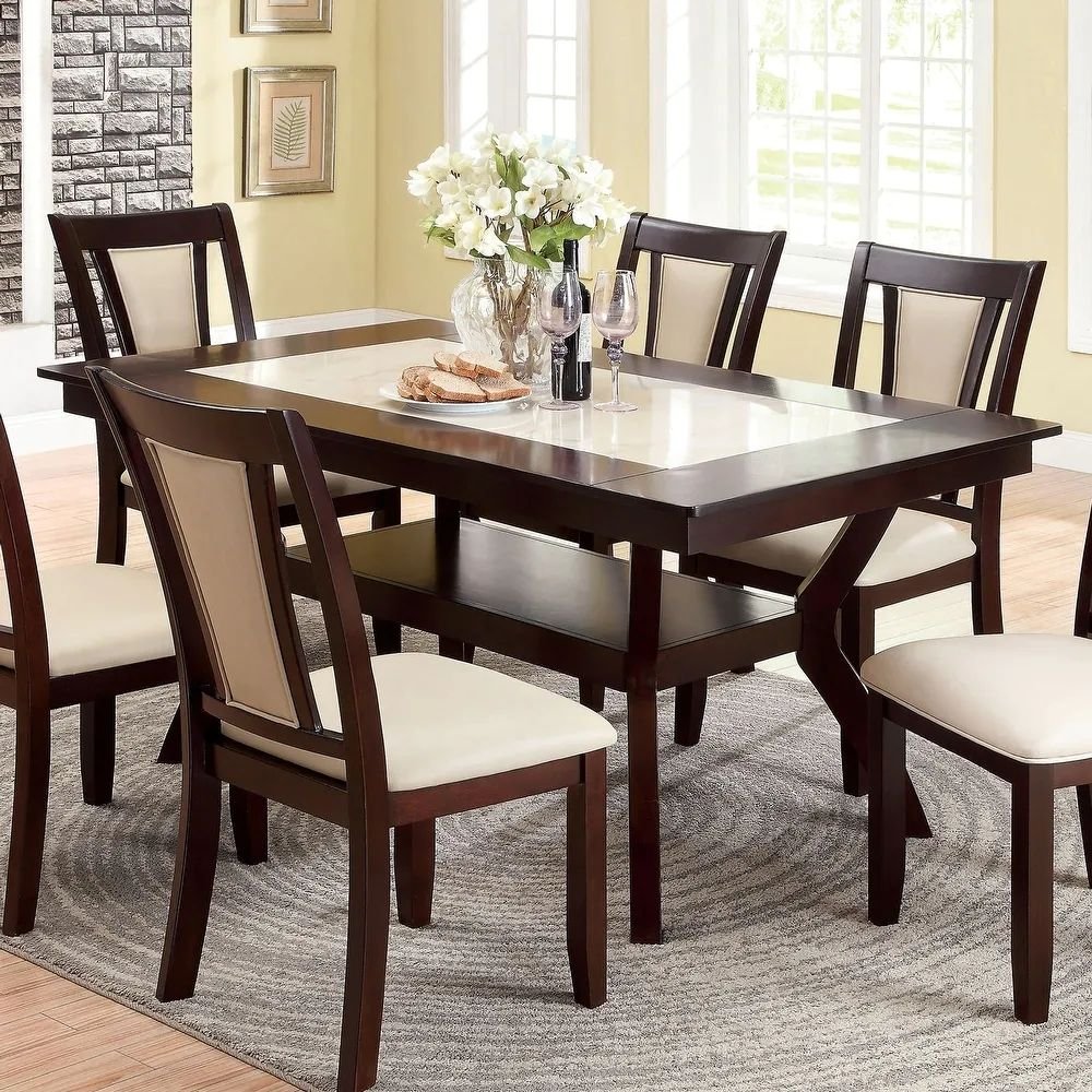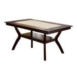 Crafted for homes that value both style and usability, this dining table blends solid construction with practical design elements. The rectangular tabletop offers ample space for everyday meals, family gatherings, and casual entertaining, while its balanced proportions ensure it fits comfortably within a variety of dining room layouts. The beige inset surface lightens the overall appearance, preventing the table from feeling visually heavy, while the dark brown frame adds depth and grounding. A built-in lower shelf enhances everyday convenience by offering additional storage without compromising the table’s clean, modern aesthetic. Designed to adapt seamlessly to contemporary lifestyles, this table serves as a dependable and visually refined dining centerpiece.