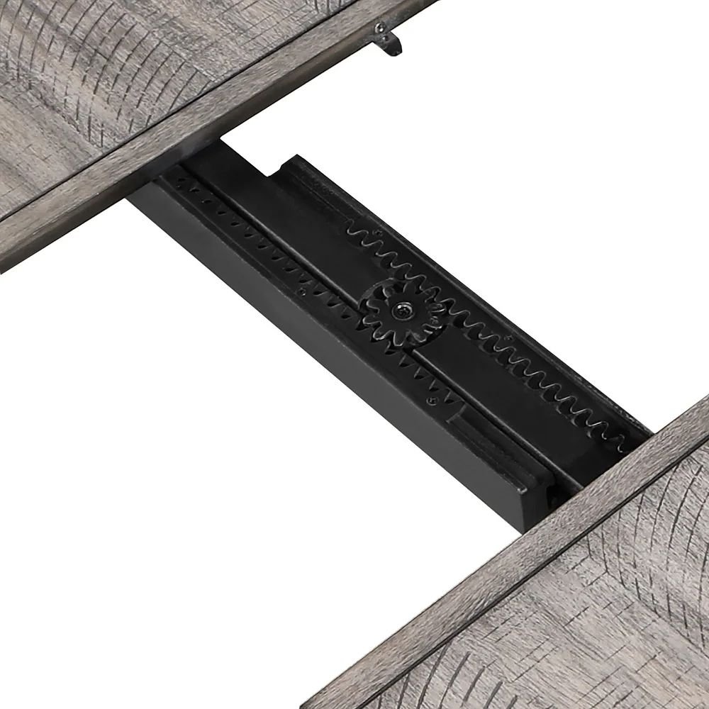 Crafted from solid wood and finished in a distressed grey and black palette, this dining table blends modern design with a welcoming, lived-in character. The extendable leaf mechanism allows the table to shift seamlessly between intimate dining and larger hosting needs, making it an ideal choice for modern dining rooms and open-plan kitchen spaces.