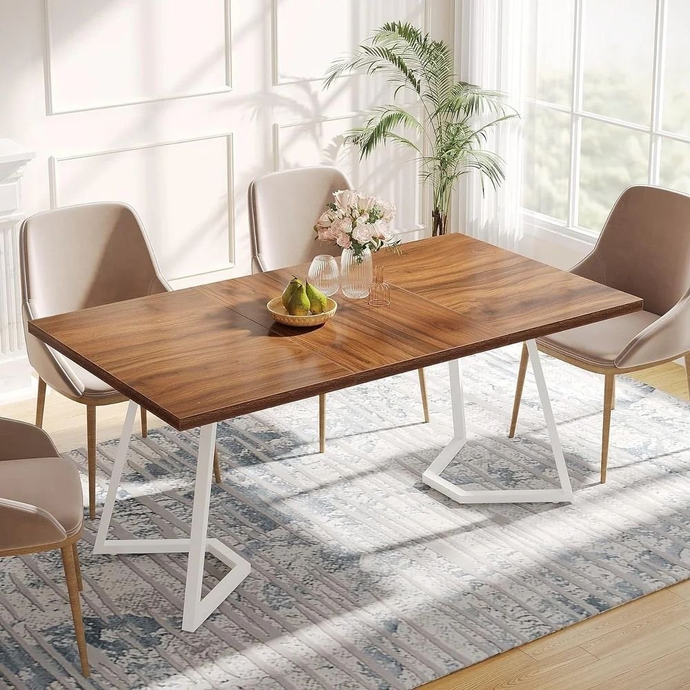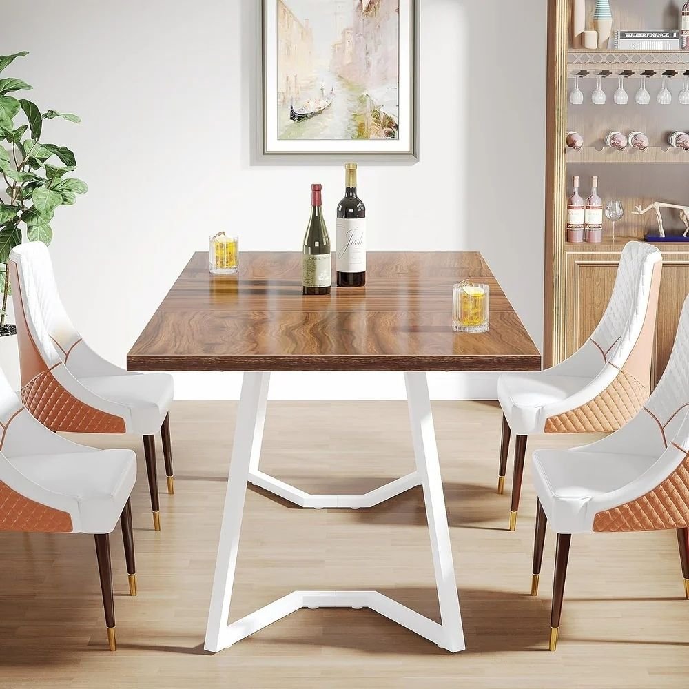 This dining table enhances modern interiors by combining natural texture with architectural restraint. The warm wood surface anchors the dining area, while the white base keeps the overall visual weight light and balanced, making the table suitable for both compact dining rooms and open-plan spaces.