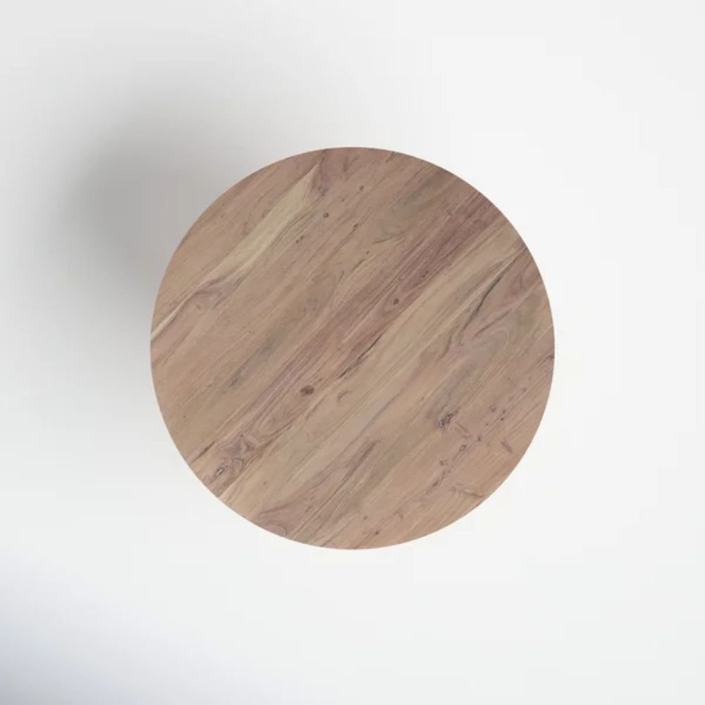The solid wood surface reveals gentle grain patterns that add warmth and individuality to each dining table. Smoothly finished edges enhance tactile comfort and contribute to a refined, approachable profile. The round tabletop works in harmony with the base, creating a continuous visual flow that feels intentional and calm. Light interacts naturally with the wood throughout the day, adding dimension without glare. These details give the dining table a timeless quality that remains visually engaging while staying understated.