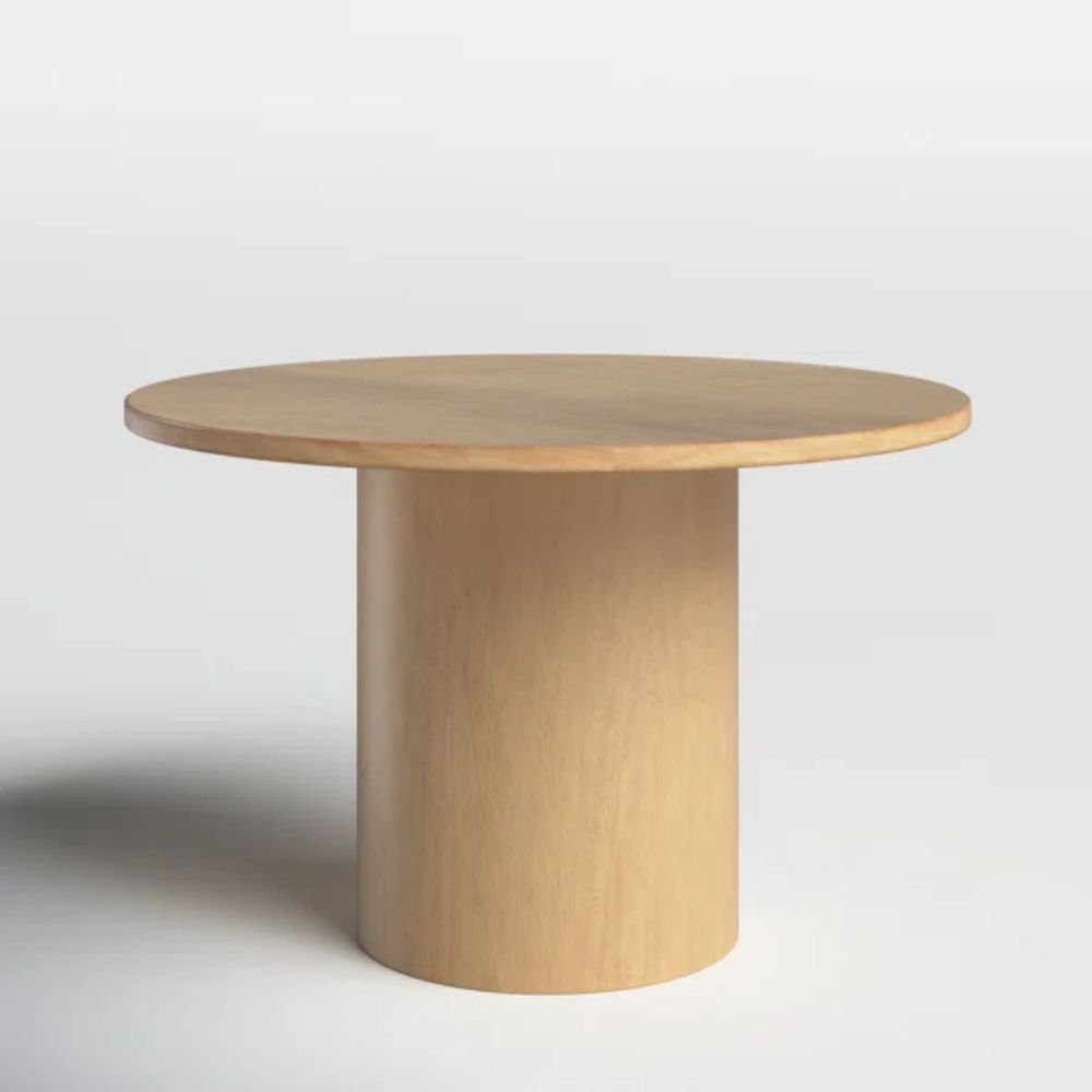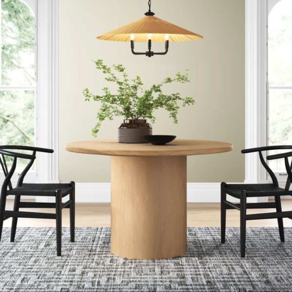 Built with a contemporary design approach, this dining table focuses on proportion, material integrity, and visual clarity rather than ornamentation. The round tabletop encourages connection by allowing everyone to face inward, supporting conversation and ease during meals. A matte natural finish softens the solid wood surface, allowing the organic grain to remain visible without shine or distraction. The overall presence feels composed and timeless, making it suitable for homes that value thoughtful design and relaxed dining experiences. Whether used daily or for occasional gatherings, it establishes an atmosphere that feels warm, intentional, and quietly refined.