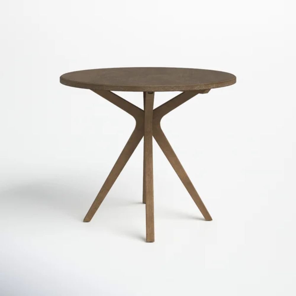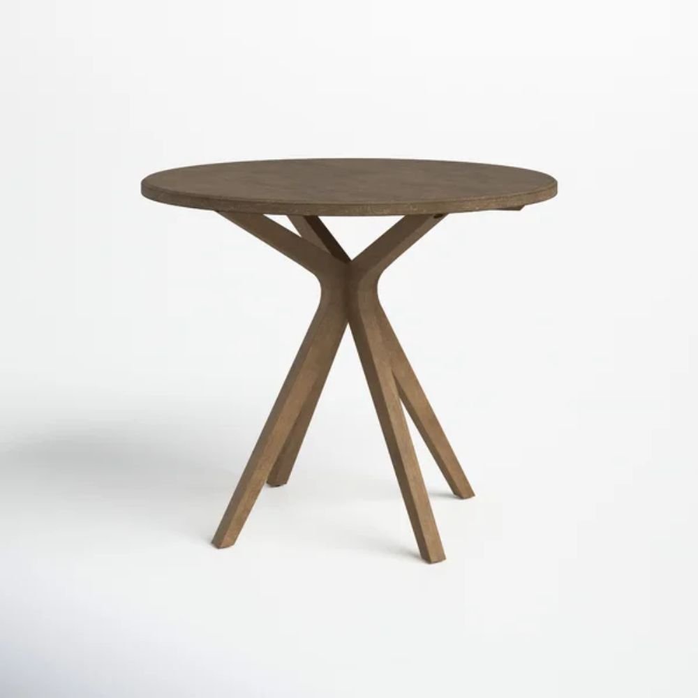 Rooted in a modern design language, this dining table focuses on proportion, material clarity, and visual calm rather than decorative excess. The circular tabletop supports easy interaction, allowing shared meals to feel relaxed and informal. Finished in a brown gray wash, the solid wood surface offers subtle tonal depth while maintaining a muted, grounded presence. The cross-style pedestal base introduces architectural interest without visual heaviness, giving the table a sculptural quality that enhances smaller dining areas. Together, these elements create a dining table that feels intentional, approachable, and well suited to everyday living.