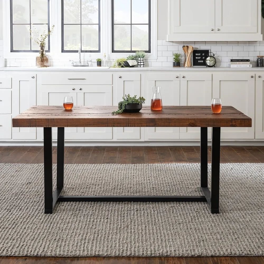 Distressed Solid Wood Dining Table – Attractive Metal Base Design