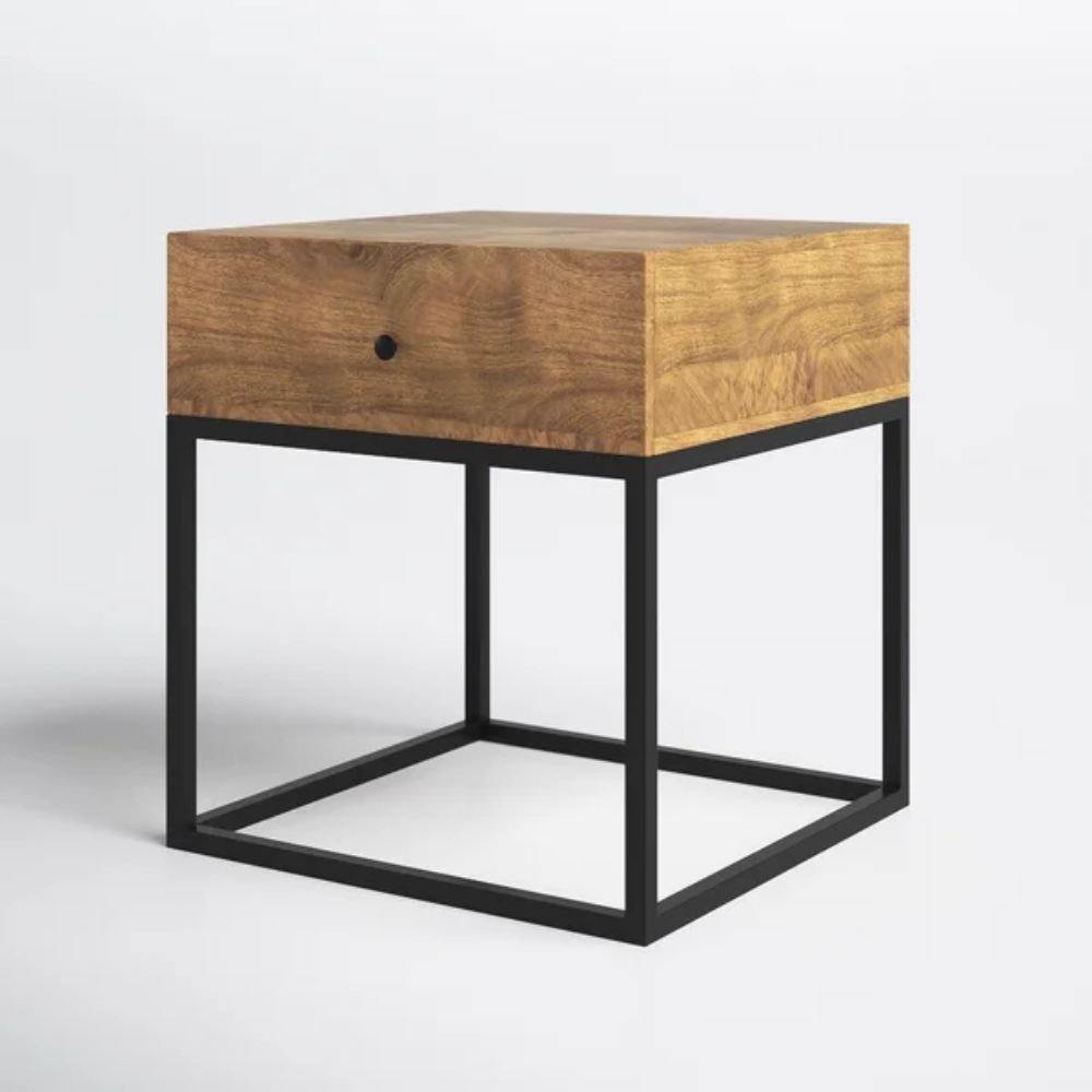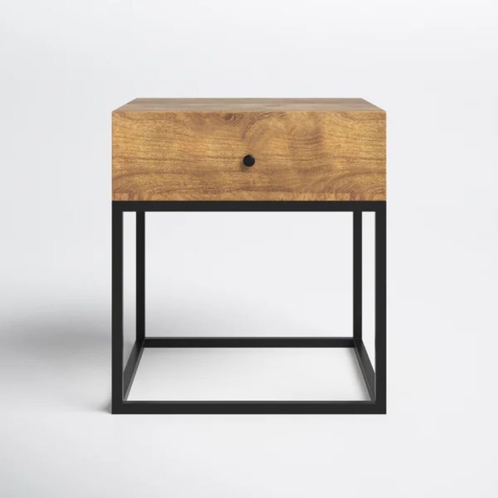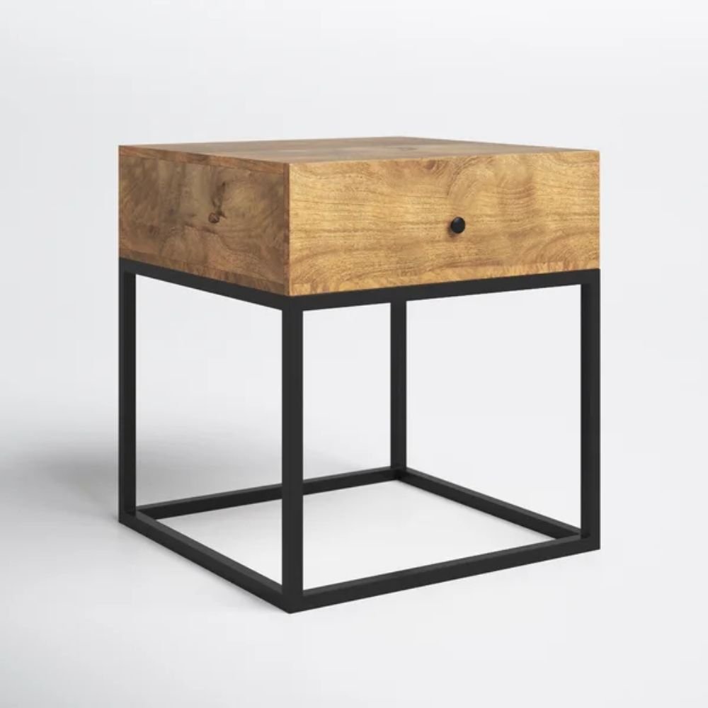 Industrial black solid wood and metal drawer end table for luxury contemporary interiors - Modera Furnish