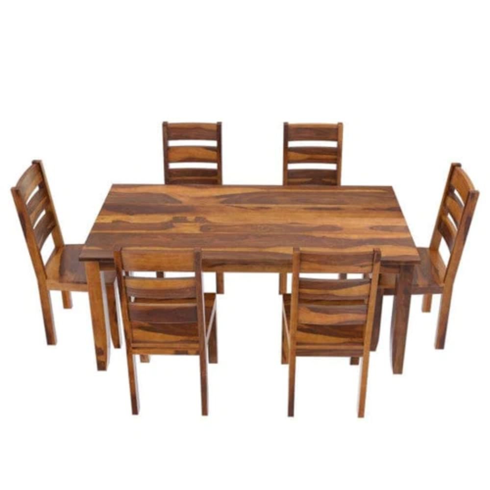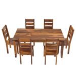Exalted Sheesham Wood Dining Set with 6 Slat-Back Chairs – Noble Feast