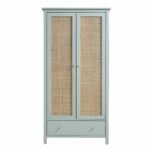 The height of 185 cm is ideal for creating a layered vignette with tall floor plants and nearby textured rugs. By introducing the soft grey tones of this wardrobe, you add a layer of sophistication that feels both grounded and airy. Whether styled with minimalist ceramics on top or surrounded by lush greenery, the impact of the rattan texture creates an inviting atmosphere that reflects a high standard of living and a keen eye for contemporary design. The large door surfaces allow for dynamic light play, making the piece a versatile asset as your personal style evolves over time.