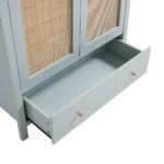 Hand-Woven Rattan: The dual door panels feature authentic cane weaving for a breathable and high-end organic aesthetic.