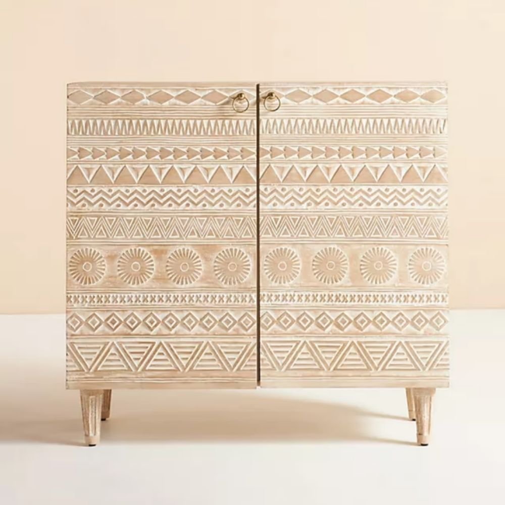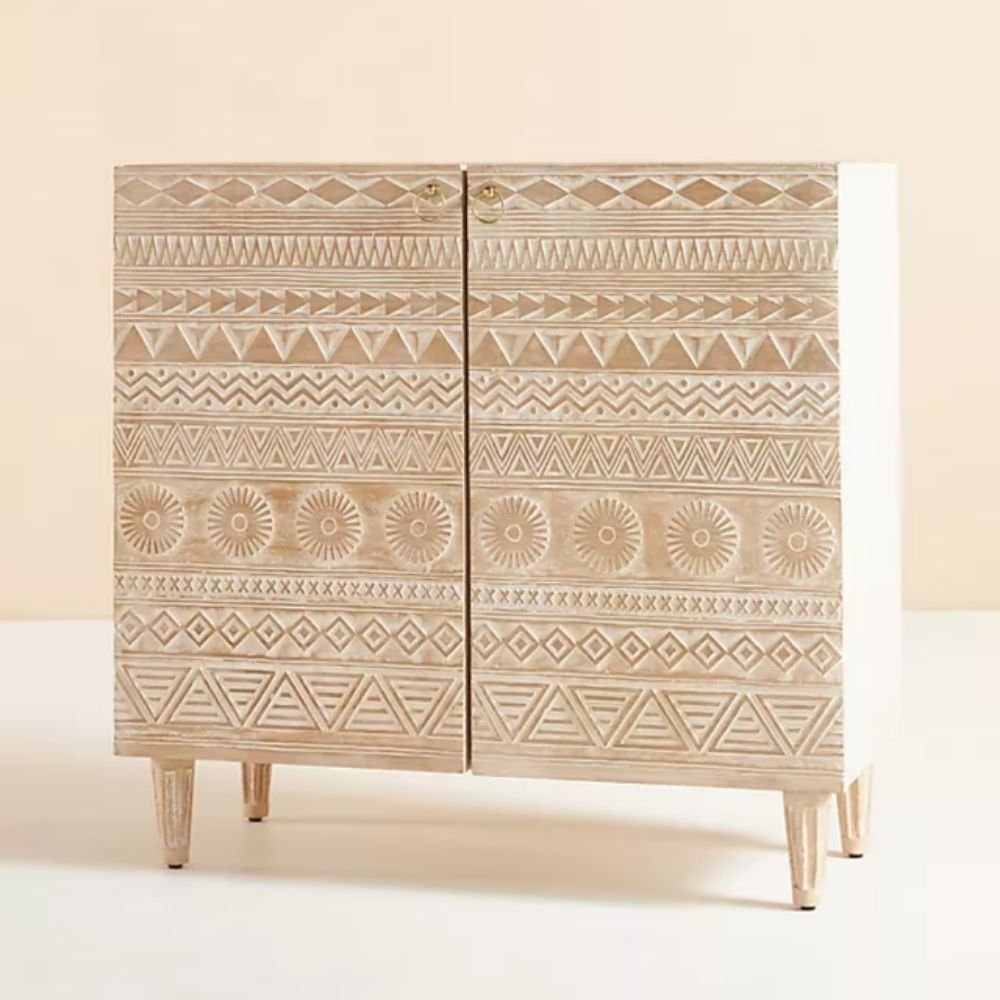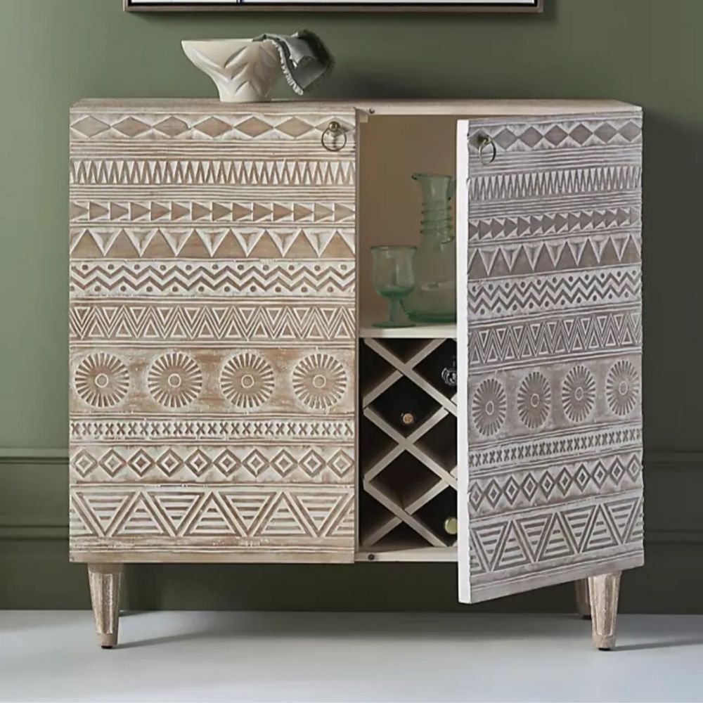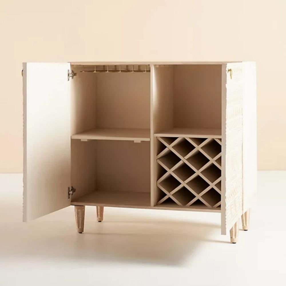 Hand Carved 2 Door Solid Wood Bar Cabinet in White – Juno Crest