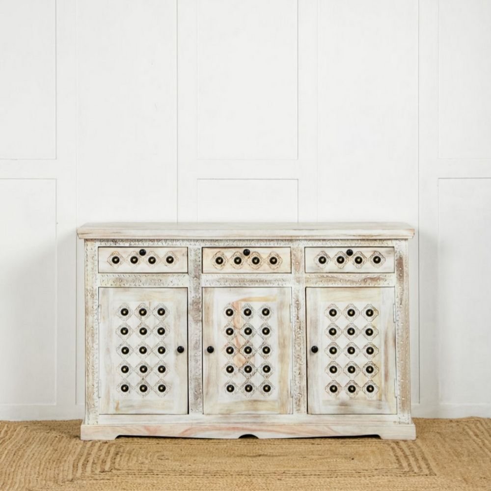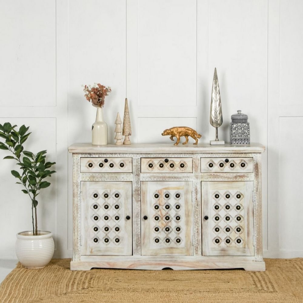 Hand-Carved White Sideboard in Solid Sheesham Wood – Lyra Thorne