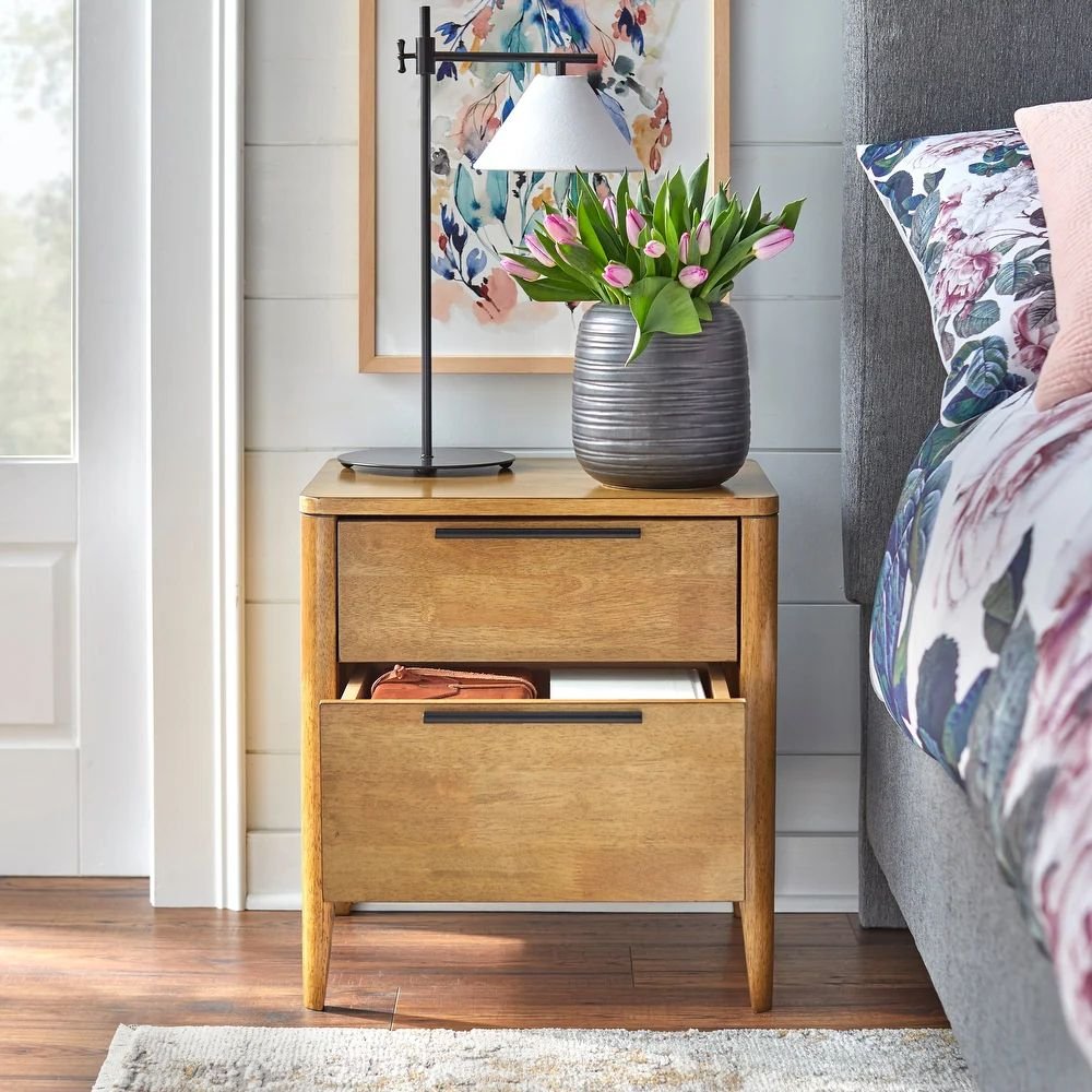 Dual Drawer Capacity: Features two large drawers with smooth-glide tracks to keep all your nighttime essentials hidden.