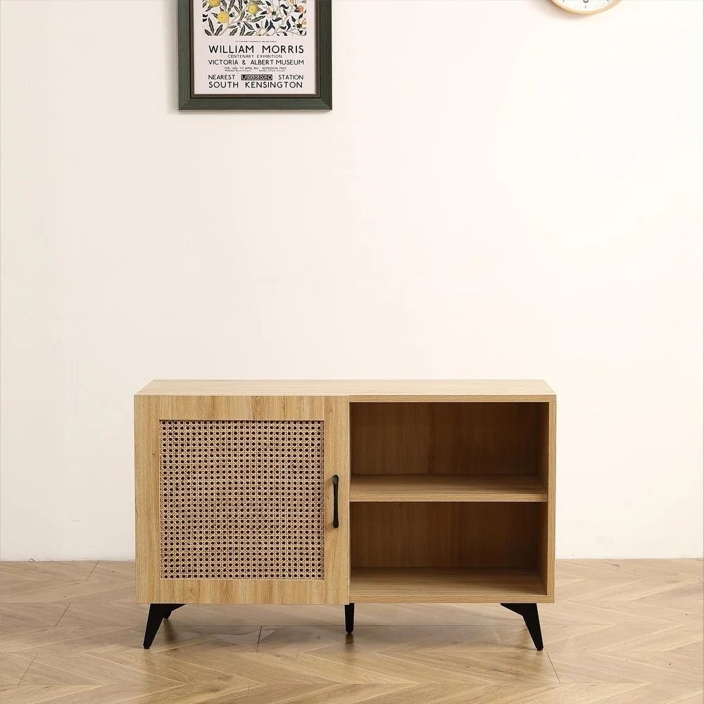 This shoe cabinet is thoughtfully designed to combine concealed and open storage. The enclosed section behind the cane door keeps shoes neatly hidden, helping maintain a clutter-free environment. Open shelves provide quick access to frequently used footwear, baskets, or accessories, making everyday routines effortless.
