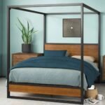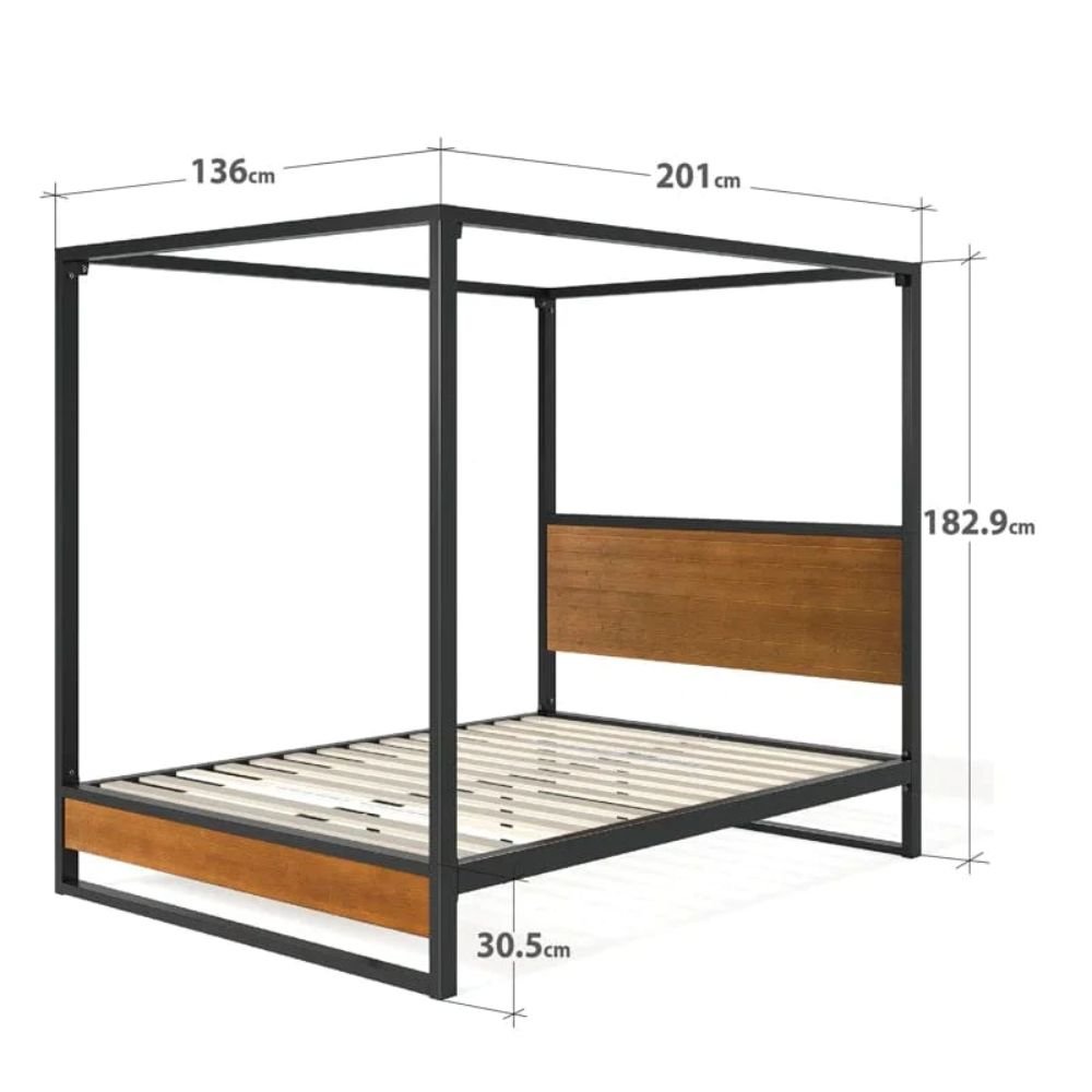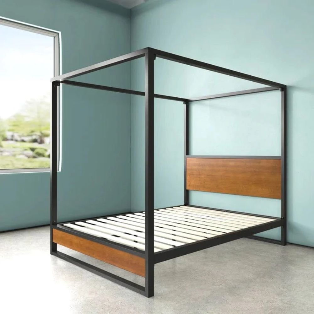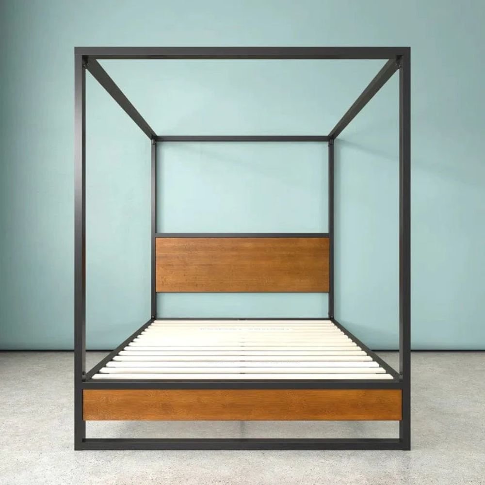 Home Bedroom Beds Bed Frame 4 Poster in Steel and Wood – Majestic Peak